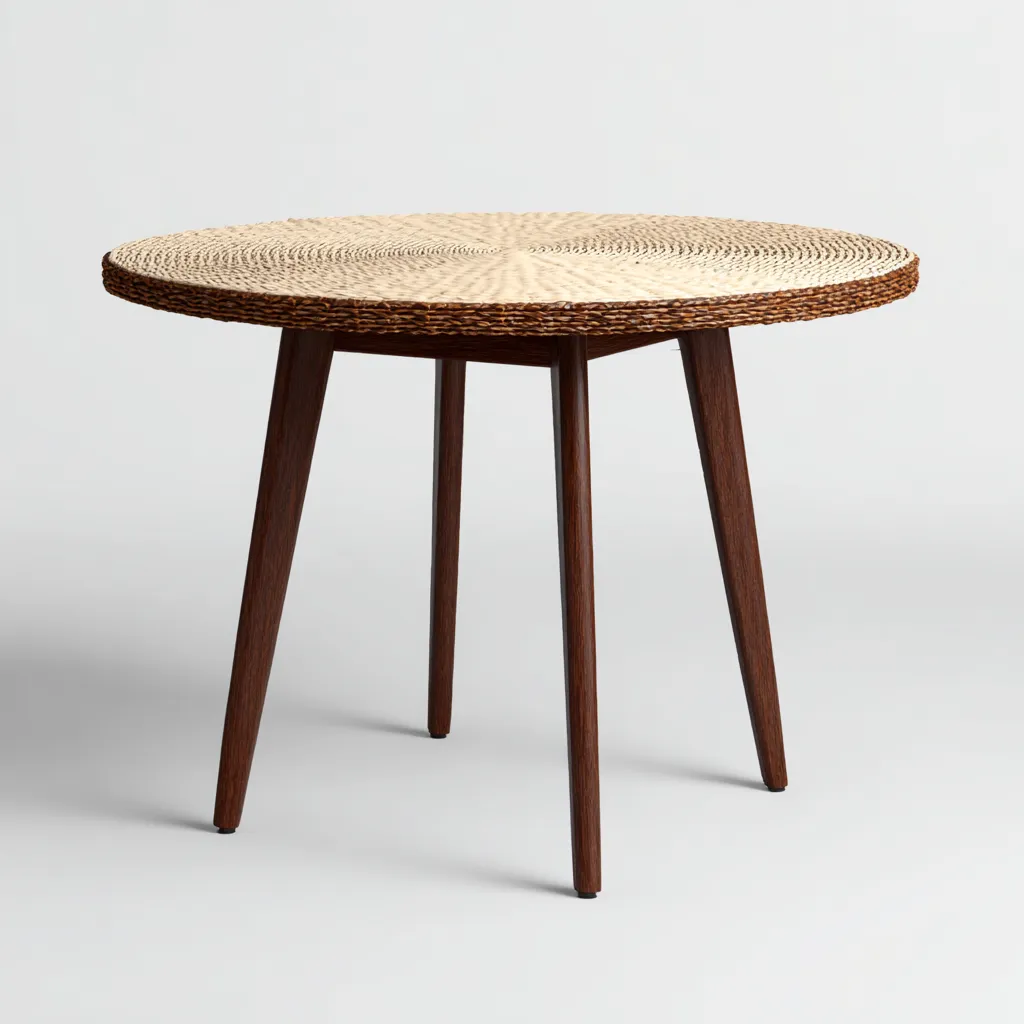 Tavolo da giardino-Legno-Rattan-100x100x74 cm-Naturale-Marrone-Stile outdoor artigianale